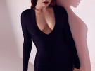 Перед камерою постала в елегантній чорній сукні з глибоким декольте.
