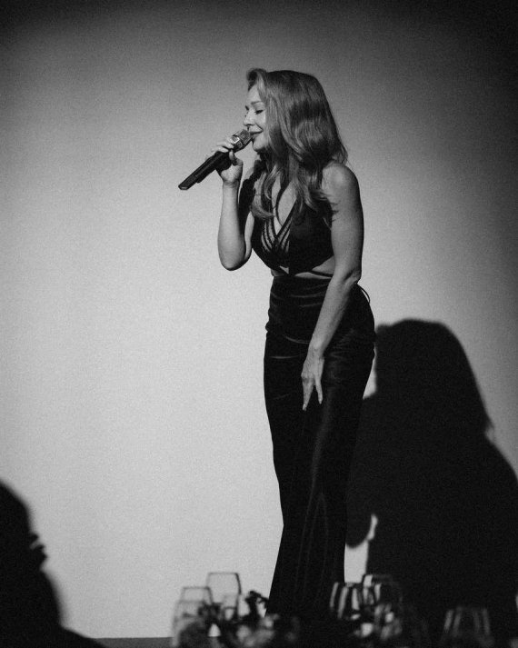 Кароль була у чорній атласній довгій сукні з американською проймою, декольте і вирізами на талії. Фото опублікувала фансторінка артистки в Instagram.