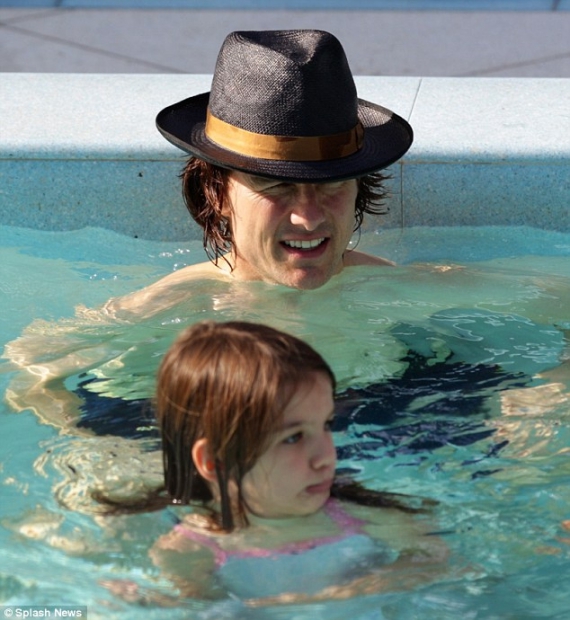 Круз разом з дочкою купався в басейні, не знімаючи при цьому капелюха. Після зйомок "Місія нездійсненна 4", це для нього довгоочікувана відпустка. А ось Сурі та Кеті Холмс частенько відпочивають разом.