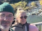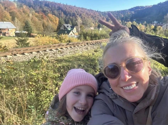 Для подорожі жінка одягла однотонний пуховик і сонцезахисні окуляри. Її коханий з донькою постали в принтованих куртках.