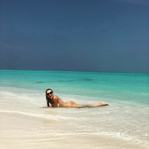 Показала вона ще одне фото, де лежить оголеною в морі.