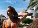 На серії пікантних знімків, опублікованих в Instagram, зірка позує в помаранчевому купальнику. Влаштувала фотосесію на території готелю посеред пальм.
