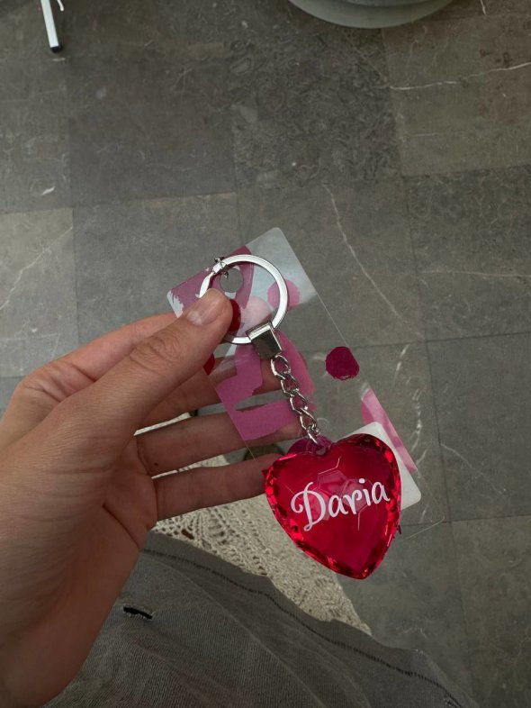 Крім цього, нещодавно Кацуріна опублікувала допис у Telegram. Вона показала брелок у формі серця зі своїм ім'ям.
