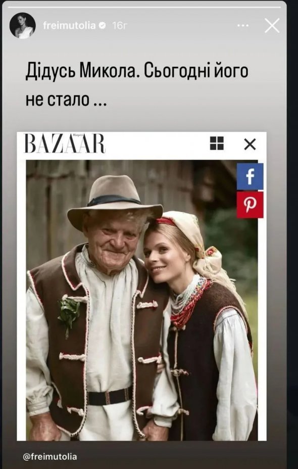 У своєму Instagram жінка зазначила, що помер її дідусь Микола. Йому було близько 95 років.