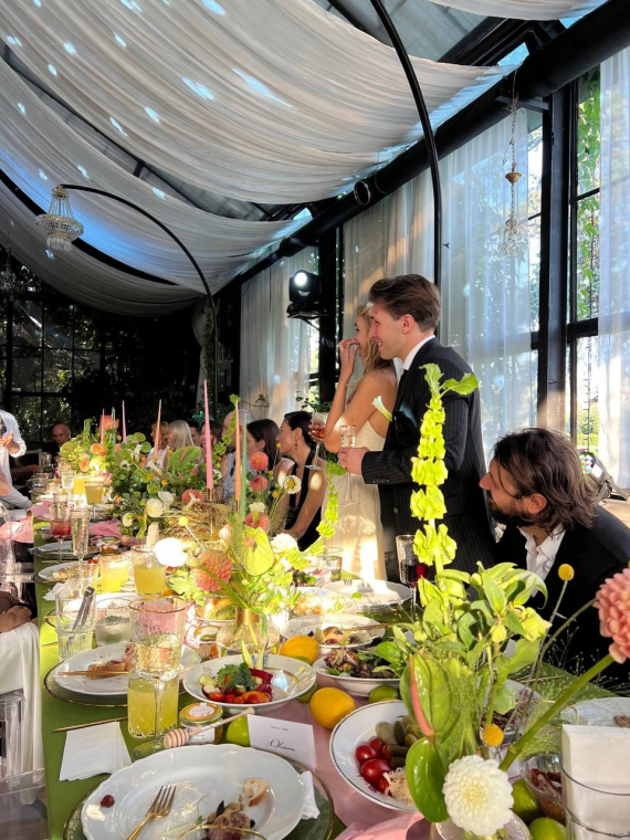 Додала, що через свою тривожність організувала весілля сама за місяць. Церемонія відбувалася у вінтажному стилі, а святкували - у квітковій оранжереї на ВДНГ.