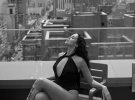 Каменських позувала на відкритій веранді на фоні міста. Дівчина змінила кілька образів. На одному фото Настя постала у чорних лосинах і топі, на іншому - позувала у комплекті білизни.