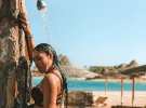 На серії знімків, опублікованих в Instagram, зірка позує в чорному бікіні, яке вдало підкреслює принади жінки. Бретельки в ліфі були з ланцюжків. Фотосесію влаштувала на пляжі під душем.