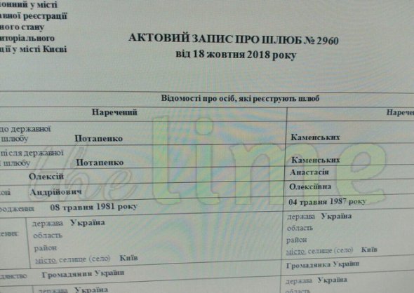 Насправді пара одружилась майже рік тому - 18 жовтня 2018-го. Про це свідчить документ про реєстрацію шлюбу, повідомило видання The Lime.