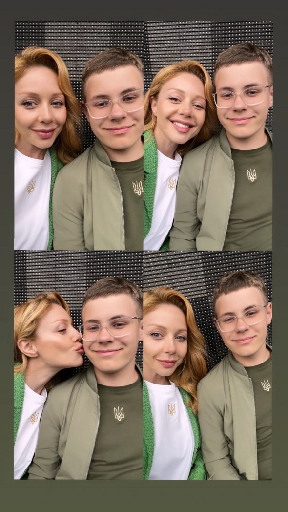 На знімку Тіна з сином позують у патріотичних футболках, на яких зображено герб України.