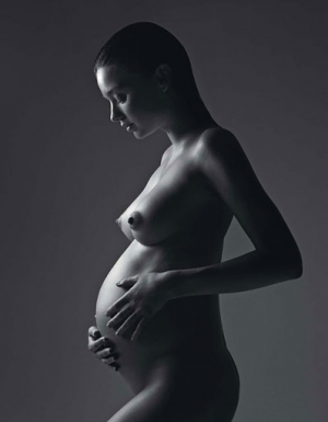 Австралійська модель Міранда Керр, дружина голлівудського актора Орландо Блума, знялася оголеною для журналу W, перебуваючи на сьомому місяці вагітності.