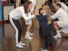 До моменту приїзду герцогині Кембриджської, яка змінила елегантний жіночний образ на спортивний, біля навчального закладу вже стовпилися школярі, які тепло зустріли її.
