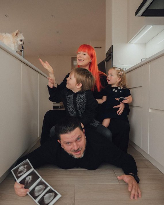 Фотосесію Світлана Тарабарова влаштувала на кухні. Сфотографувалася із чоловіком Олексієм, сином Іваном і донькою Марією.