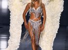 Белла Хадід спочатку продемонструвала червоний мереживний комплект із прозорими панчохами та плащем. Після чого переодяглася у біло-срібне вбрання з паєтками, китицями та масивними білими крилами. Модель повернулася на подіум після перерви, пов'язаної з лікуванням хвороби Лайма та проблемами психічного здоров'я.