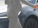 Для прогулянки знаменитість вибрала кеди та смугасту чорно-білу сукню, що облягає.