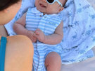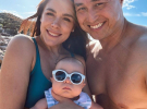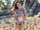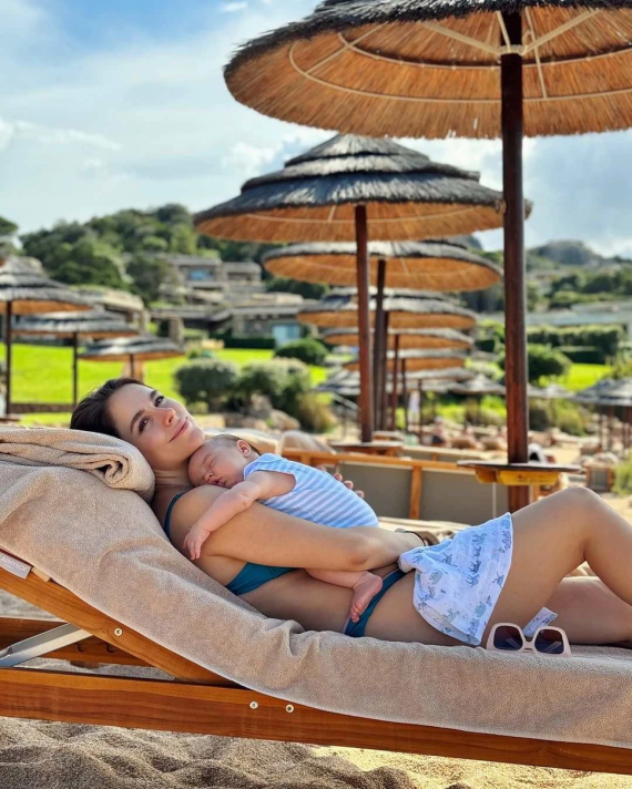 На фото, опублікованих в Instagram, жінка показалась у купальнику. Малюк був одягнений у смугасте боді та дитячі окуляри.