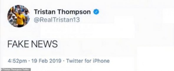 Після цього Трістан Томпсон опублікував у Twitter допис "Брехливі новини". Але згодом його видалив.