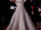 На червоній доріжці кінозірка постала в пишній сукні сірого кольору від бренду Armani Prive.