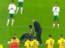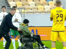 Захисник показався на кріслі колісному. Він розпочав матч першим поштовхом м'яча на полі.