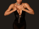 Перед камерою постала в тісному латексному корсеті з глибоким декольте й прозорій спідниці.