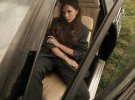 Зірка позувала в полі та авто. Для фотосесії вона одягла трендовий штанний костюм сірого кольору. Крім цього приміряла мініспідницю, жакет оверзайз і шкіряну куртку.