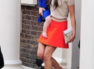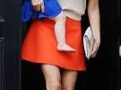 Ось і цього разу дует "дочки-матері" був ошатний і яскравий: Вікі віддала перевагу бежевому топу з апельсиновою спідницею з власної колекції, а також сандалі на платформі. Дівчинка ж була одягнена у синій сарафан.