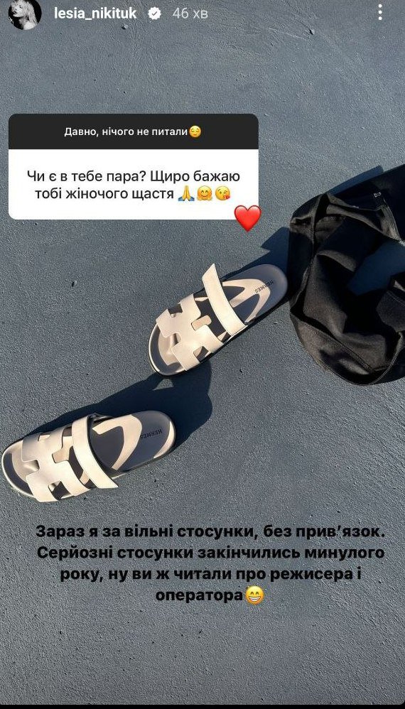 "Чоловік має бути впевнений в собі і розуміти, що це просто моя робота. Ну і розуміти, що йому час від часу будуть ставити питання на вулиці: "Це ж ви Лесін хлопець, так? Прикольно, вам пощастило", – пояснила Нікітюк.