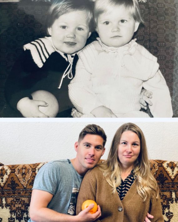 Остапчуки повторили дитячий знімок із сімейного архіву і показали кадр з різницею в 35 років. Нещодавно двійнята зустрілися в Умані на Черкащині: там вони народились і виросли.