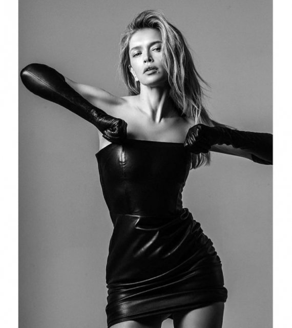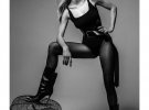 На одному з фото зірка позує в чорній латексній сукні, яка підкреслює її форми, та в таких же рукавичках. На іншому знімку співачка в чорних колготах та боді в тон.