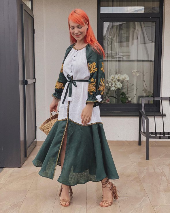 Однією з перших постала у біло-смарагдовій сукні-вишиванці Світлана Тарабарова. До речі, вбрання співачки прекрасно гармонує з яскравим кольором її волосся.