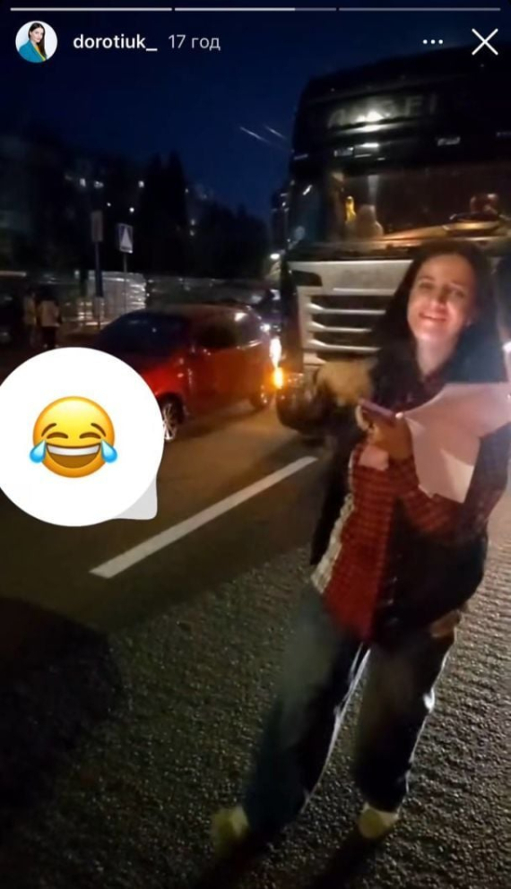 "По дорозі в кіно я застрягла в заторі. Коли раптом зліва в мене вʼїхала велика фура. Найобразливіше навіть не те, що у винуватця не виявилося страхового поліса і тепер на мене чекає "десять кіл пекла" для відшкодування збитків через МТСБУ. А те, що в авто винуватця жодного пошкодження. А в мене пів машини зчесано, пошматоване переднє колесо і дзеркало зліва. Почуваюся добре. Я навіть не злякалася, просто дуже прикра ситуація. Це купа грошей на машину. Я просто все вимірюю в грошовому еквіваленті", - поділилась блогерка.