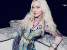 Мадонна одягнула на вечірку блакитну сукню-сорочку з принтом від Versace. Доповнила образ золотим поясом, кольє та чорними босоніжками на підборах.