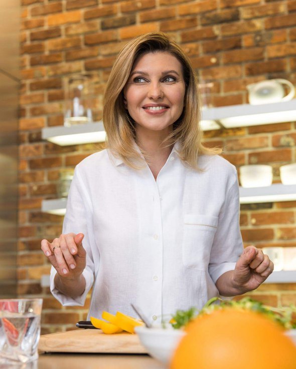 Перша леді України Олена Зеленська провела прямий ефір у мережі. Перед камерою постала в елегантній блузці кольору хакі. Жінка у прямому ефірі говорила з кухарем Євгеном Клопотенком. Вони обговорювали "Міфи та реальність реформи системи шкільного харчування" в Instagram.