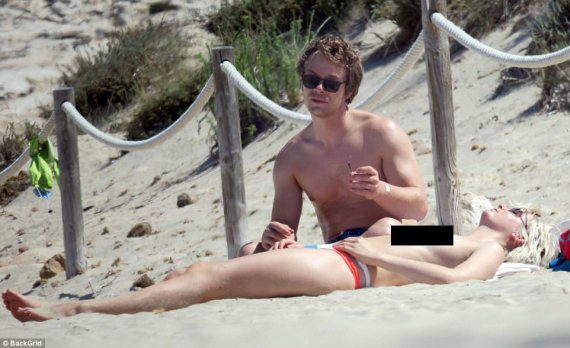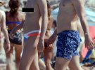 Білявка була топлес і лише, коли заходила у воду одягала неонове бікіні.