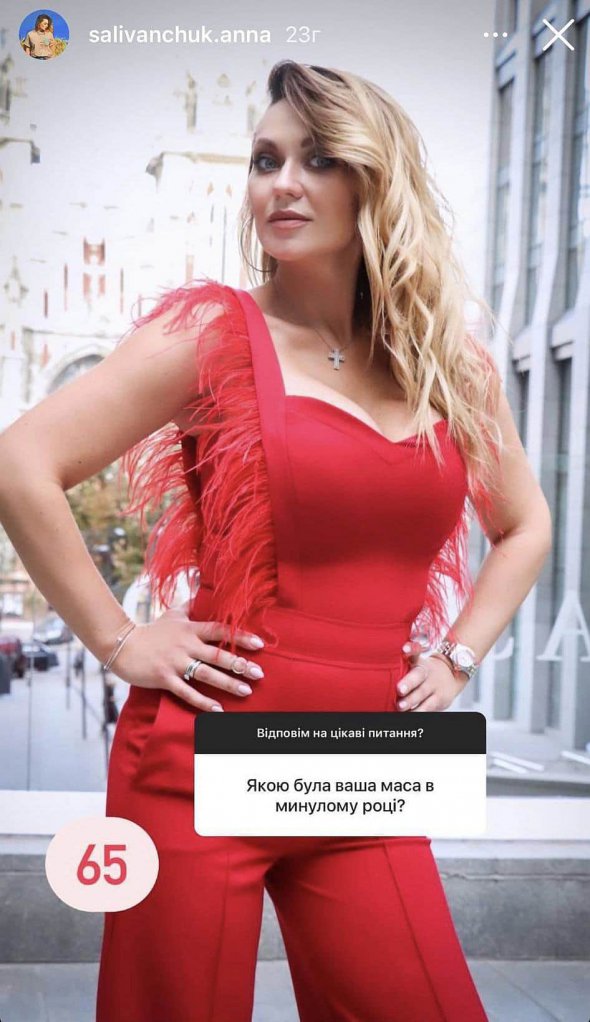 Раніше Саліванчук розказала, що схудла на шість кілограмів за місяць. Вона дотримувалась правильного харчування і займалась спортом п'ять разів на тиждень.