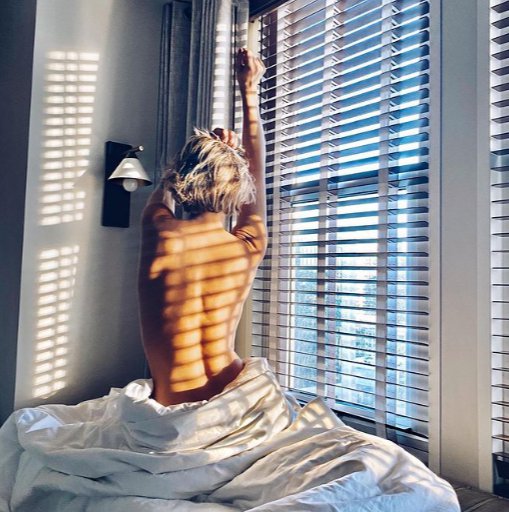 Вона позувала в ліжку абсолютно голою. Аніта повернулася до камери спиною, спокусливо потягнувшись вгору. Падаюче на неї крізь жалюзі сонячне світло вимальовувалося на шкірі химерним візерунком.