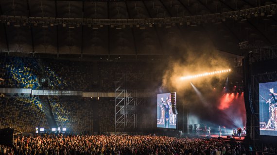 Така за масштабами сцена вперше встановлена на Олімпійському. Її довжина склала 60 метрів, вся поверхня покрита екранами, що дає можливість дивитися концерт комфортно з будь-якої точки локації. А звук встановлений з повторювачами, що дозволяє прибрати відлуння і дати чіткість.