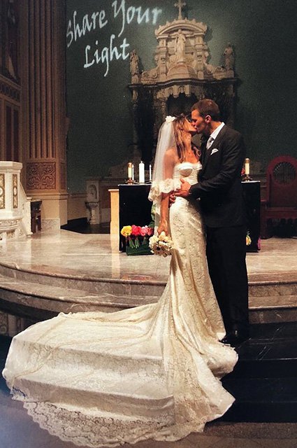 На знімках Жизель і Том цілуються біля вівтаря під час весільної церемонії, що відбулася в лютому 2009 року в Санта-Моніці. В той важливий для пари день наречена була одягнена в мереживну білу сукню Dolce & Gabbana, а її голову прикрашала фата.