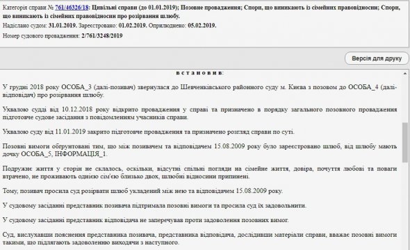 Так, в документі зазначено, що тривалий час шлюб Кароліни (справжнє ім'я Лорак) і Мурата "носив формальний характер" і примирення не було можливим. Текст опублікований на сайті Єдиного державного реєстру судових рішень.