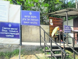 — Працюю тут менше місяця, — розказує Наталія, 26 років. Убрана в сорочку з довгим рукавом, довгу спідницю, на голові хустка. — Більшість жінок іностранки. Наших мало. Ті, що з Ізраїлю, знають, куди приїхали і як поводитися на могилі. Є такі, що помагаю їм одягтися. Жінки є жінки — і хустку, і спідницю стараються брати такі, щоб підходили за кольором. Буду тут працювати до масового приїзду паломників. Тоді на могилу приходитимуть самі чоловіки, мені тут бути не можна буде.