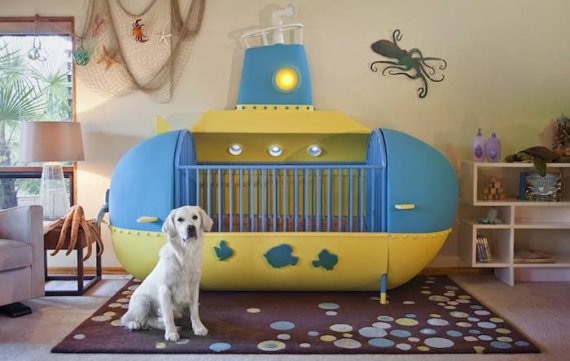Художник відеоігор Роб Адамс створив фантастичне дитяче ліжко у вигляді підводного човна. Синьо-жовтий човен не лише вражає протягом дня, але й світиться вночі.