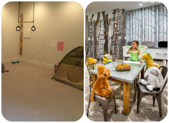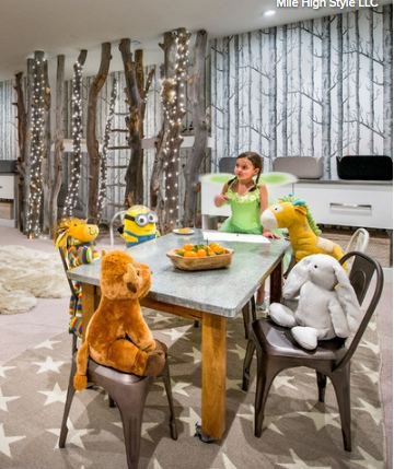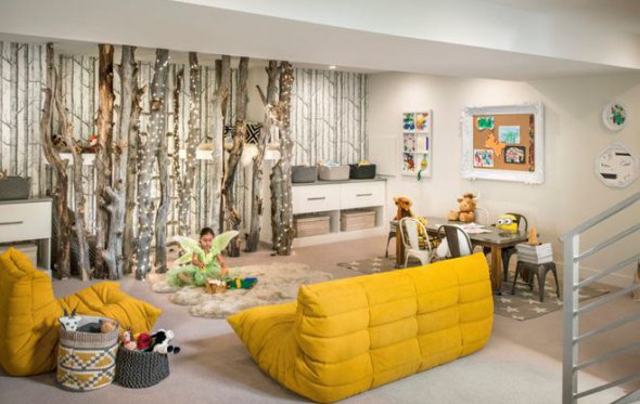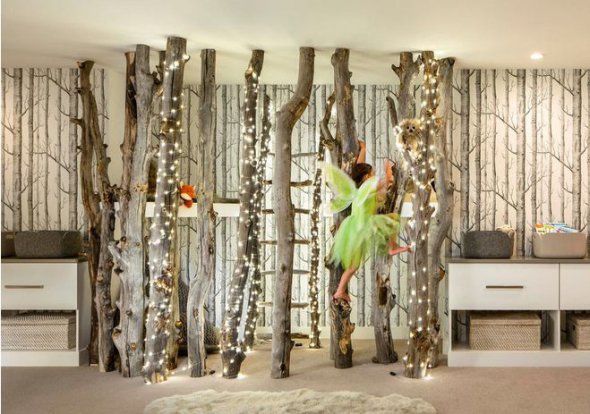 Дизайнер Ліз Фінкельштейн перетворила звичайний підвал на казкову дитячу кімнату для 4-річної дівчинки. Вона схожа на осиковий гай, освітлений гірляндами.