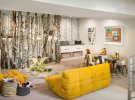 Сучасні крісла перетворюють ігрову кімнату на місце відпочинку для всієї родини. Їх колір підбирався так, аби максимально відповідати кольору листя осик.