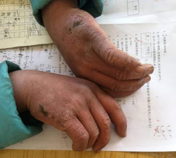 Інцидент стався у китайському селі Синьцзе. Директор школи сфотографував хлопчика. Чоловік розповів, що дитина сильно обмерзла, проте через веселий характер і легку вдачу, це не позначилось на його здоров'ї.