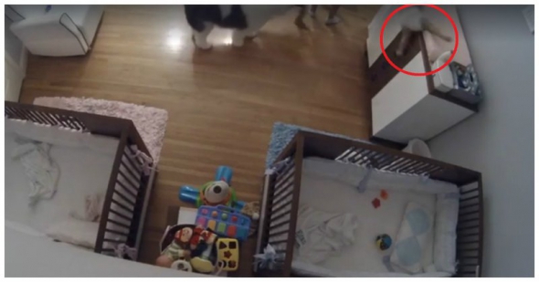 9-річний хлопчик зловив свого 11-місячного брата, що впав із сповивального столика. Кадри зняла камера відеоспостереження, встановлена в дитячій кімнаті.