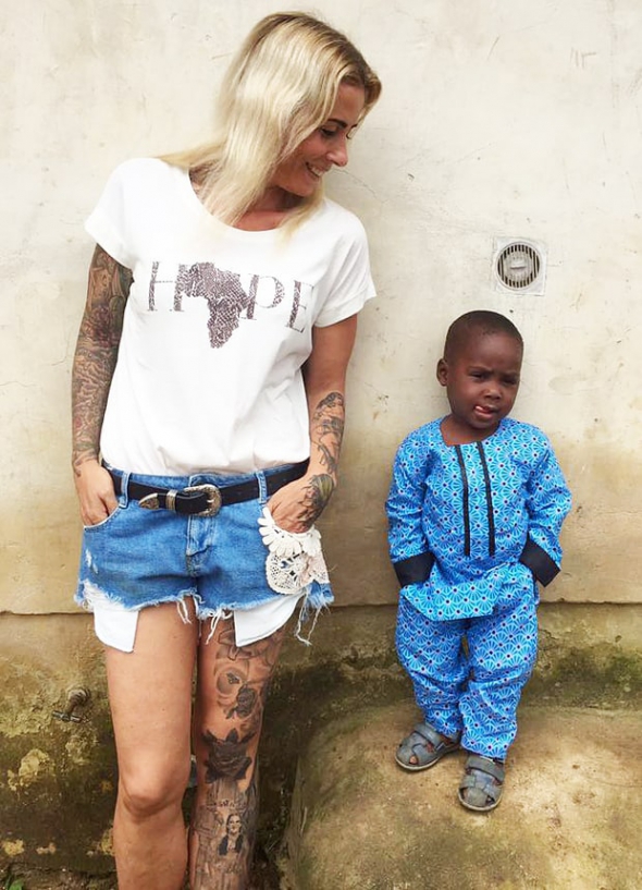 Анья Ріннгрен Ловен, співробітниця гуманітарного фонду із Данії разом зі своїм чоловіком, торік врятували у Нігерії хлопчика. Хвора виснажена дитина падала з ніг від голоду, блукала вулицями вісім місяців. Волонтери назвали малюка Хоуп (від англ. Hope - Надія).