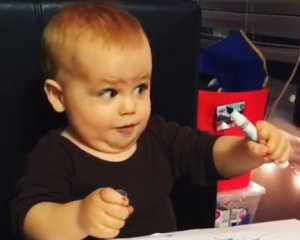 У Facebook набирає популярність відео, як малюк здивовано реагує на свою силу. На ролику він кумедно знімає ковпачок із маркера, щоб малювати.