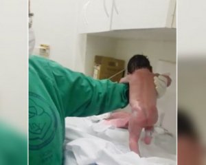 У Facebook з'явилося цікаве відео з дитиною: лікар одного з пологових будинків тримає новонародженого малюка, а той, із його підтримкою, йде по столу.