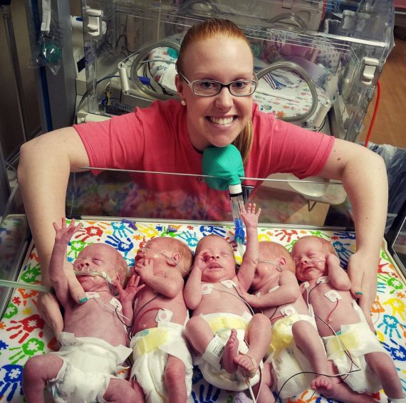 29-річна американка Бріана Дріскелл народила п'ятірнят на 28 тижні вагітності. Малюки - здорові і в середині липня були виписані з лікарні додому.