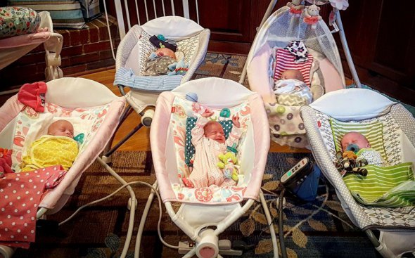 Щодня їм доводиться міняти до 60 підгузків (від 10 до 12 на дитину) і готувати 40 пляшок дитячої суміші.