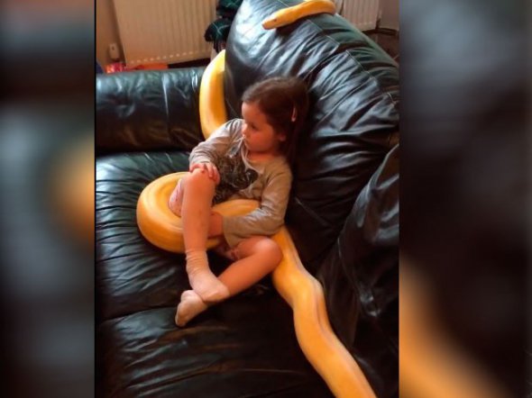Мережу вражають відеоролики про дружбу 4-річної дівчинки і величезних пітонів. Маля гладить змій, а вони ніжаться у відповідь на її дотики.